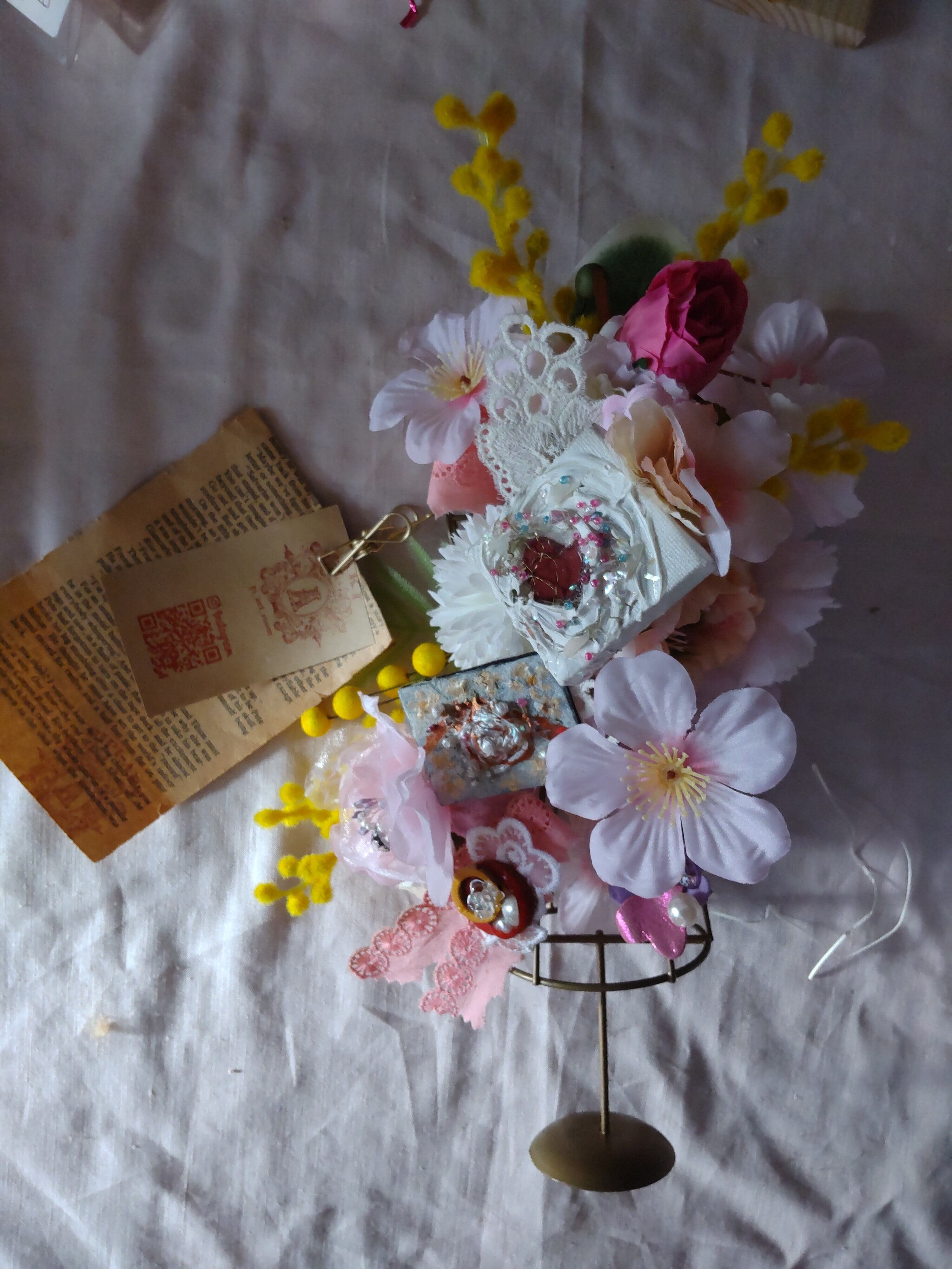 昭和のノスタルジックな雰囲気を纏ったヘアアクセサリー、昭和レースを使用した小枝ヘアコームが登場です。浴衣コーデにもぴったりで、どこか懐かしくも新しい大人ガーリーなスタイルを引き立てます。細やかなレースのデザインは、ひとつひとつ丁寧に手作りされており、特別な日の装いをより一層華やかにしてくれることでしょう。