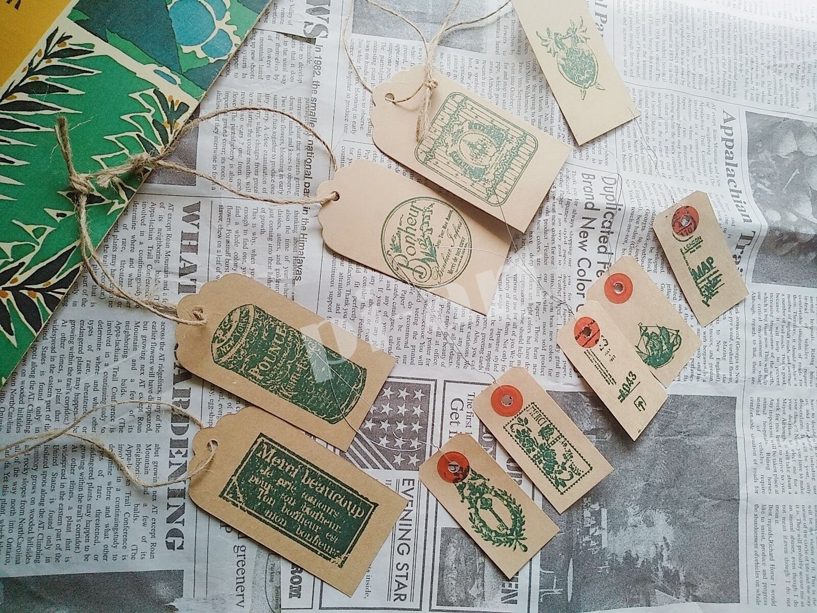 (全国一律ネコポス予定)Aアンティーク風スタンプタグ10枚SET