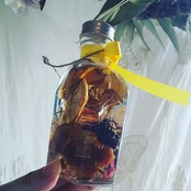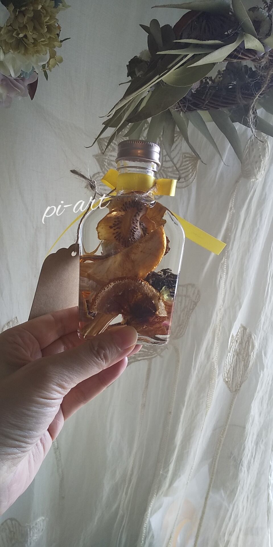 瓶にとじ込めたあめ色ドライフルーツとドライフラワーの森ハーバリウム