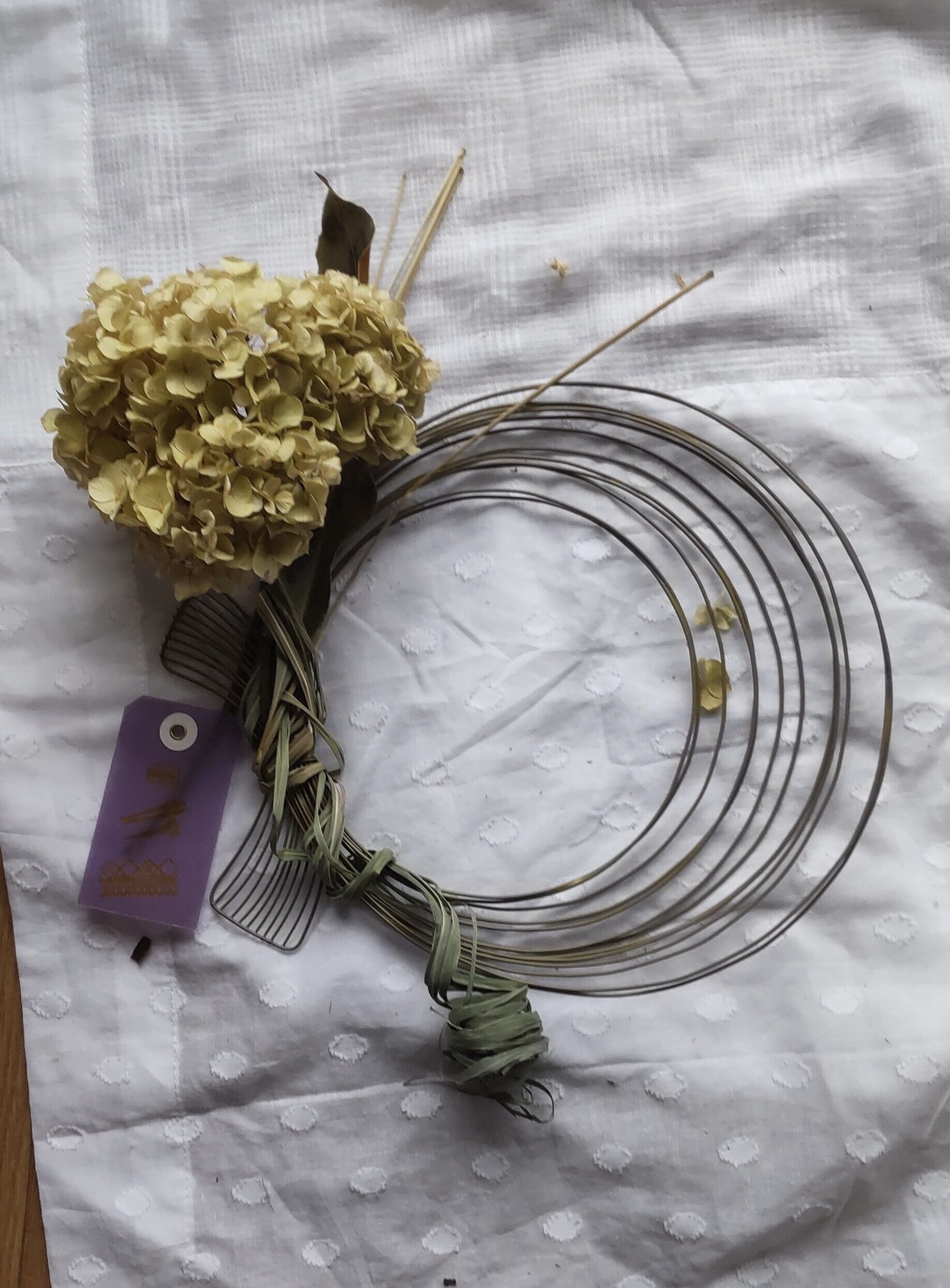 【しめ縄新作8】 レモングラスの針金まきとあじさい、グレビアのしめ縄