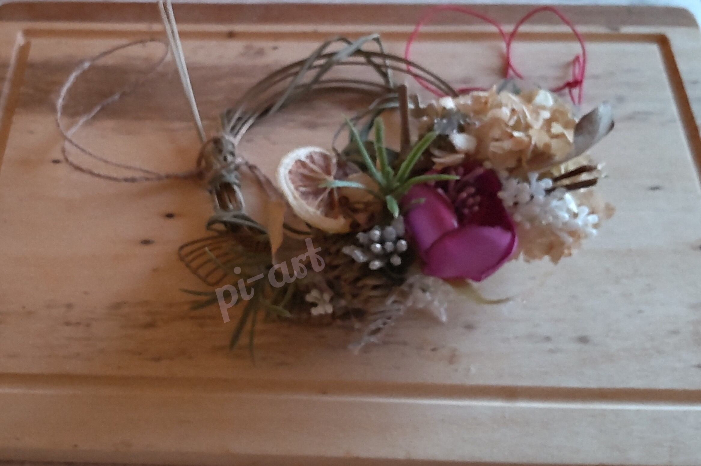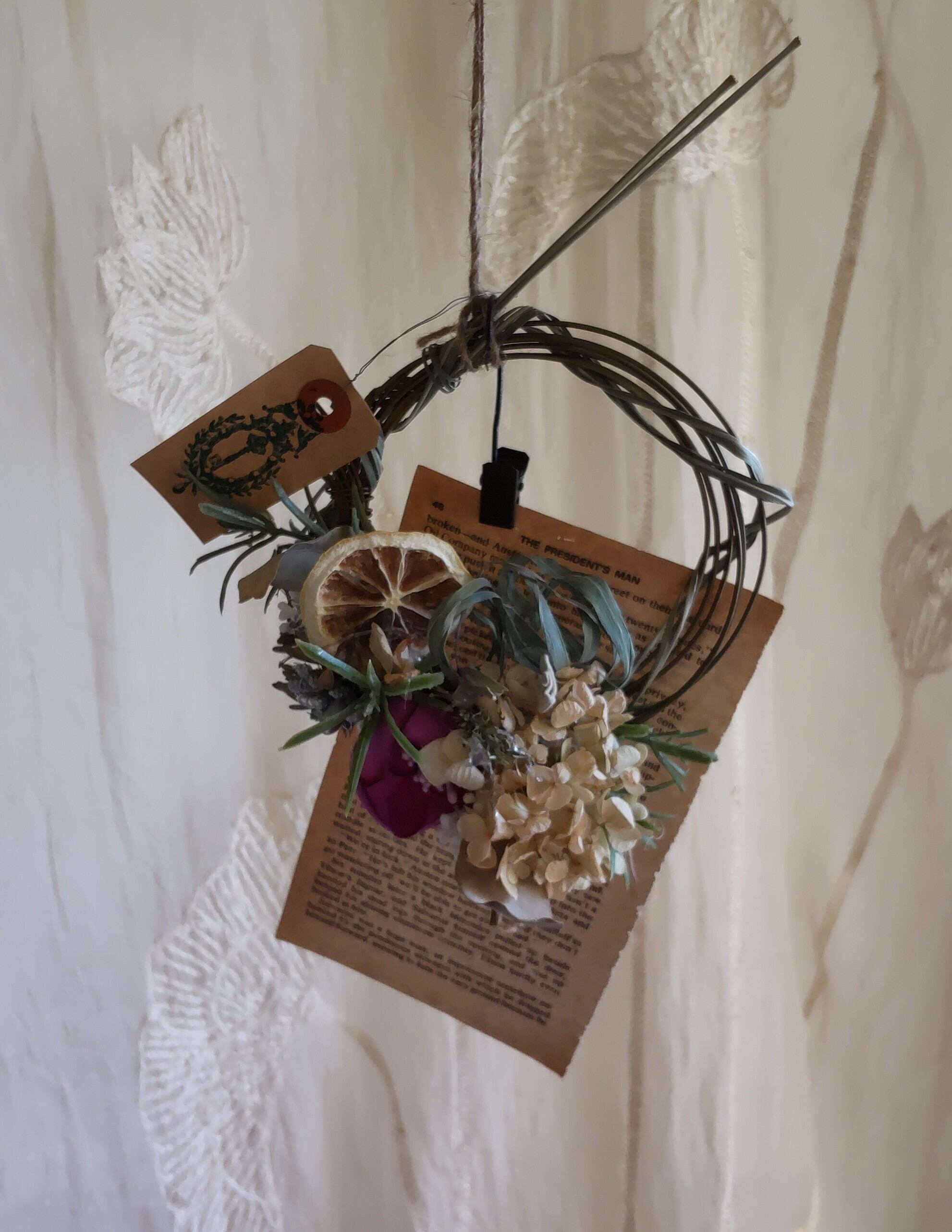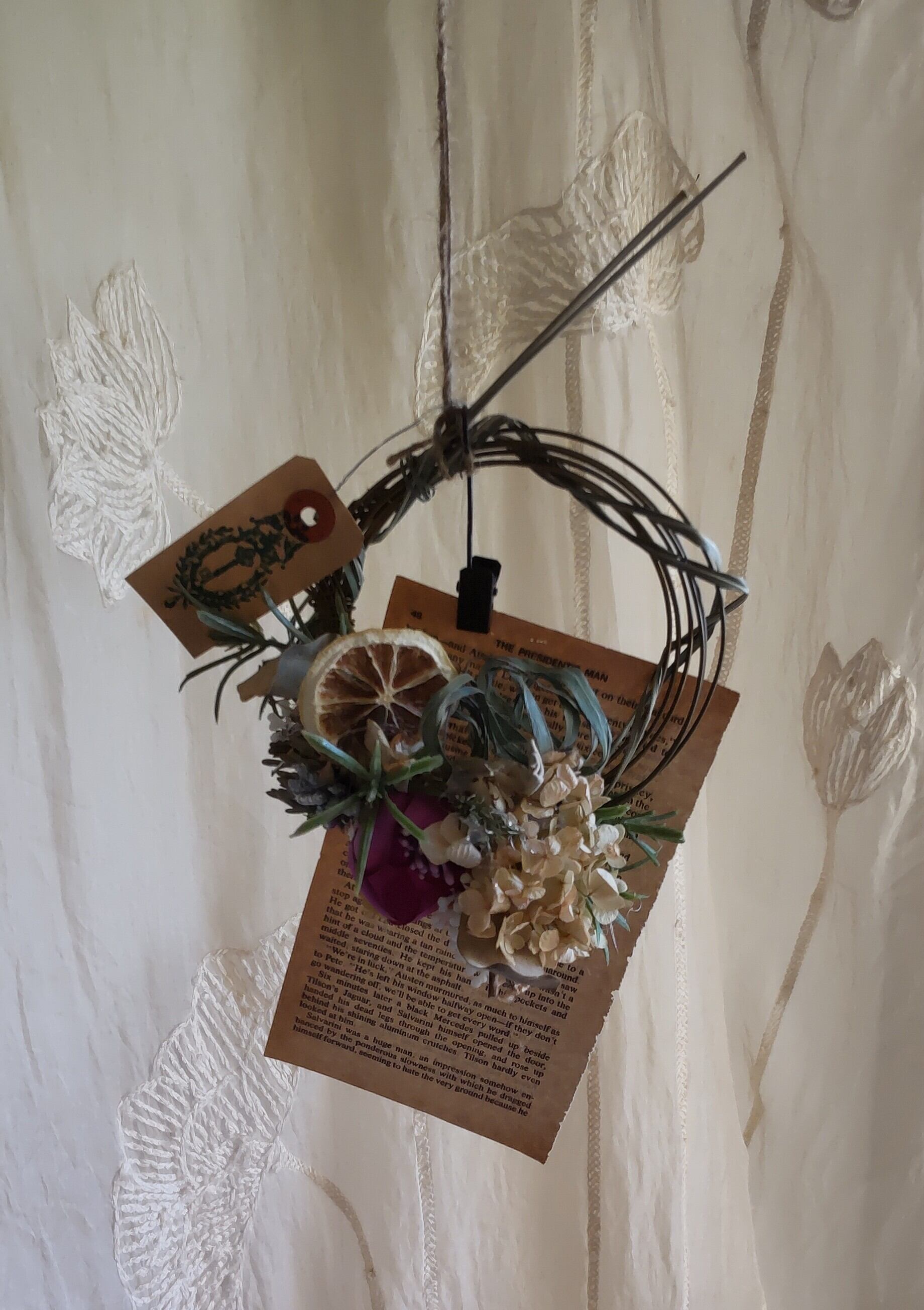 ドライのくるくるレモングラスリースにアナベル、ドライフルーツ