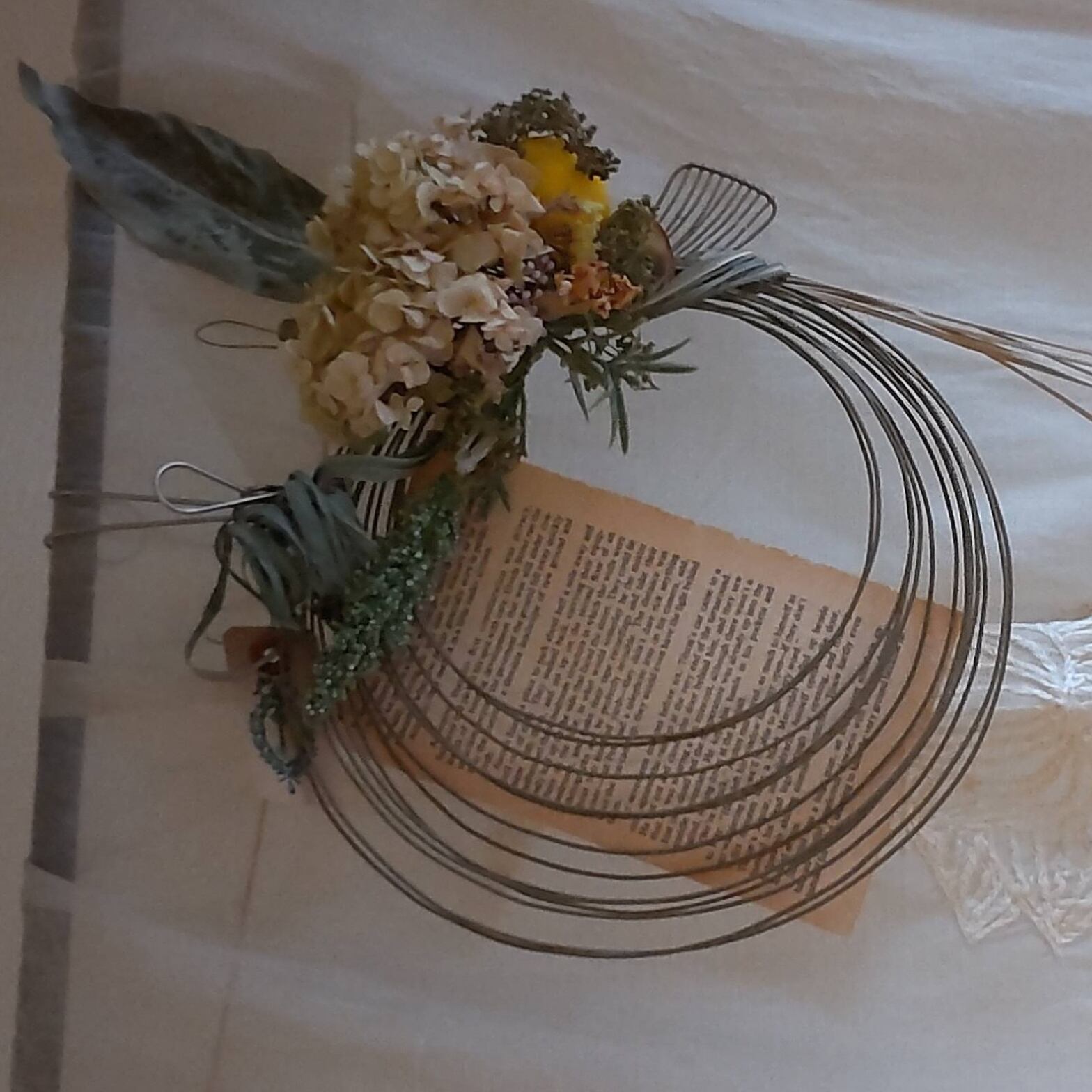 【232】くるくる レモングラスとあじさいドライカーネーションとグレビアのシャビーリングリース