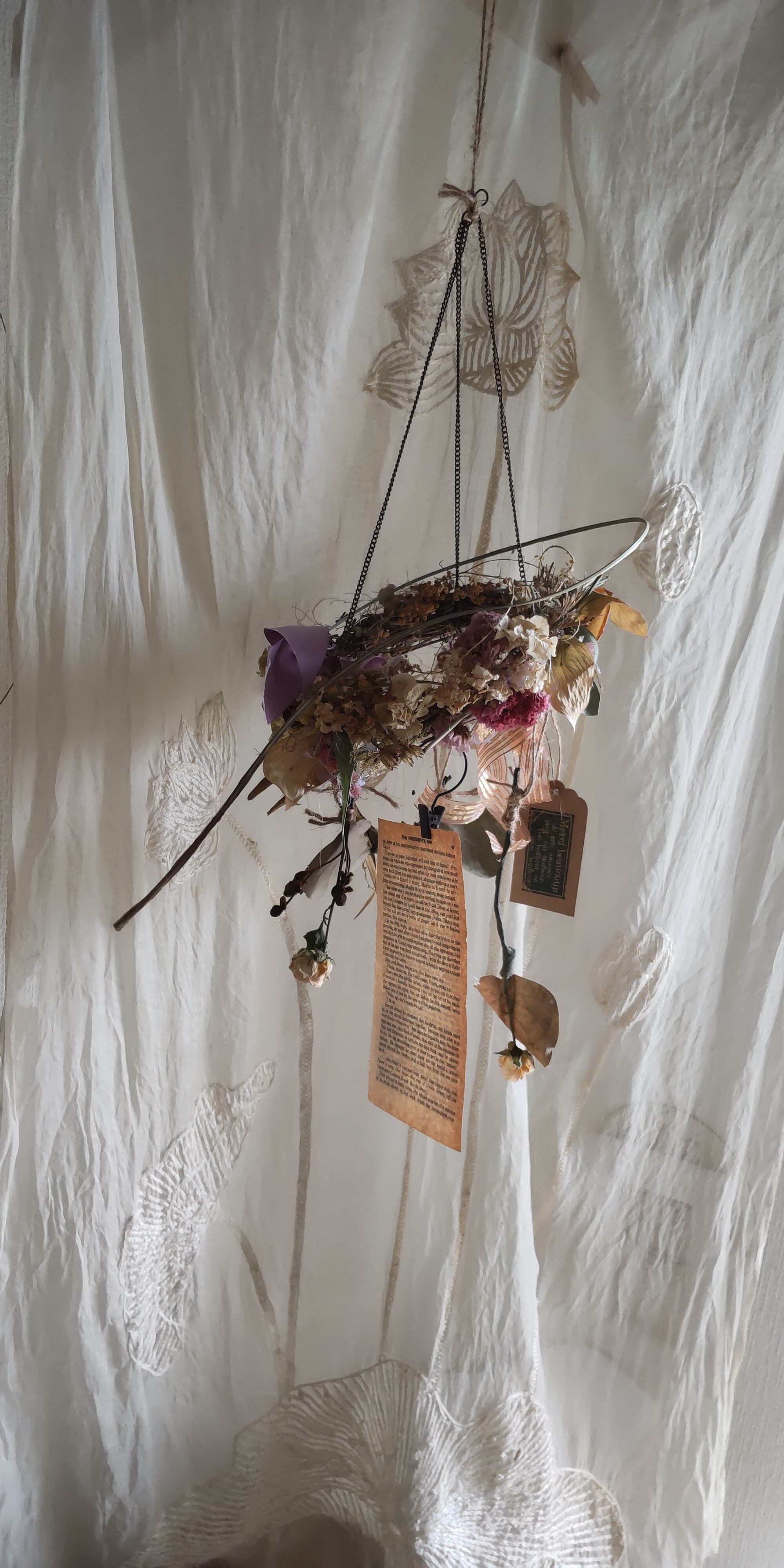 お好みでフックをかけお好きな位置にドライフラワーを飾ったり 上に置いたり