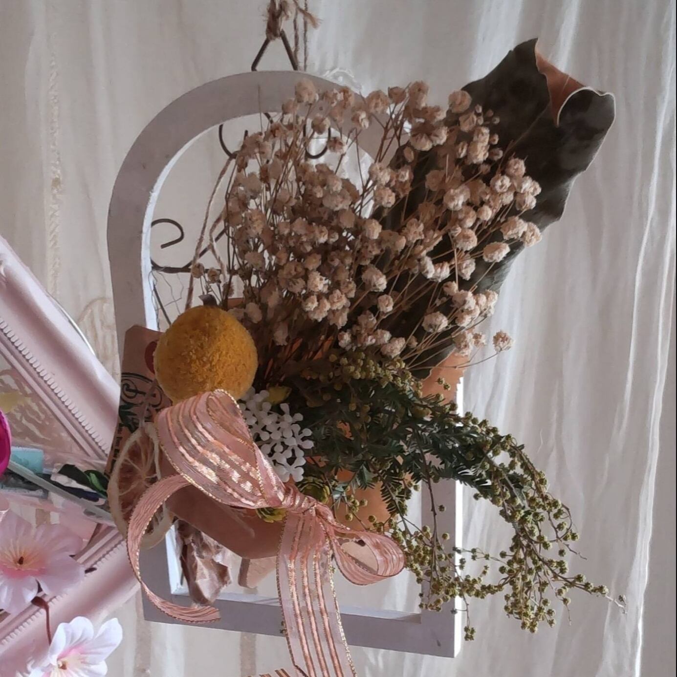 Sold【241】ミモザミニブーケと白窓アレンジメント