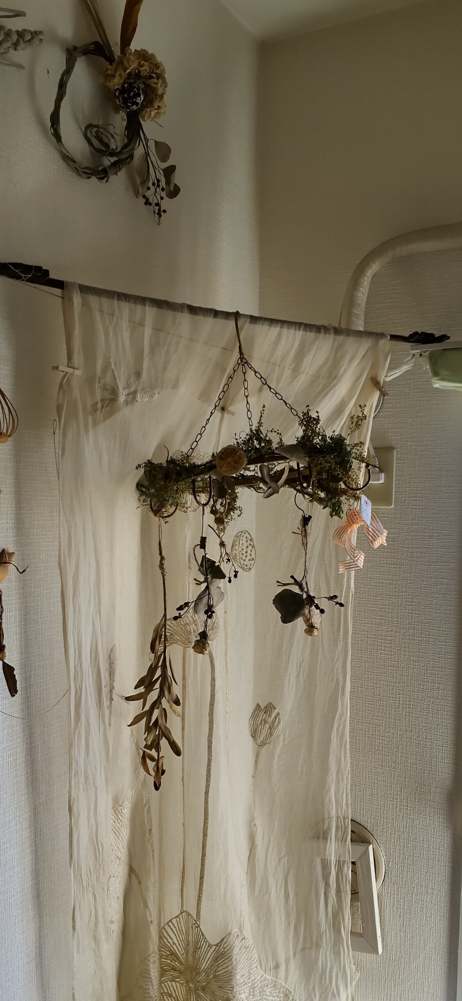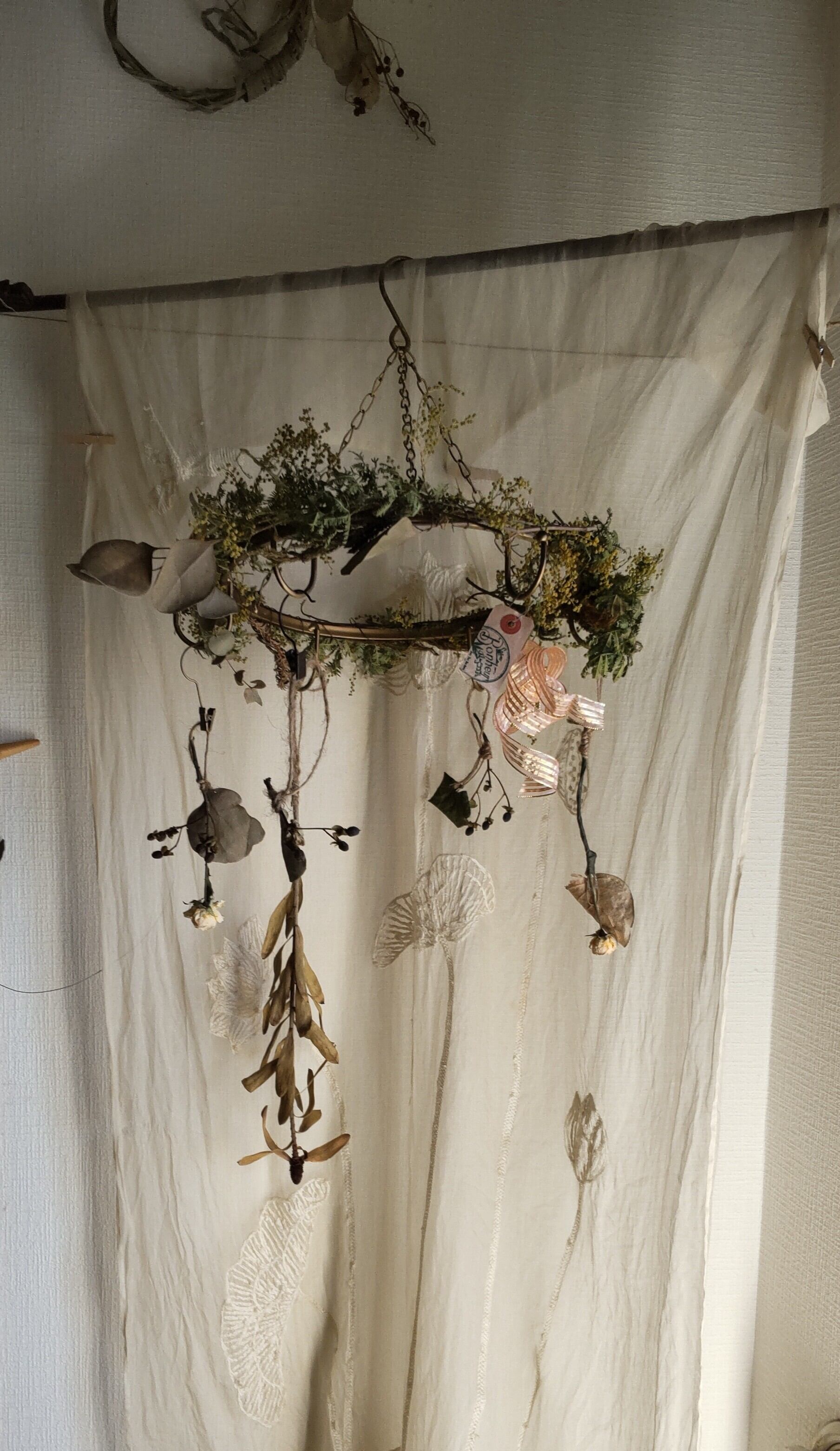 こちらは、瀬戸内地方で採れたミモザと無農薬の試飲用レモングラスを使用した、贅沢なアイアンサークルのフライングリースです。大きめサイズで存在感抜群、インテリアのアクセントとしてぴったりです。