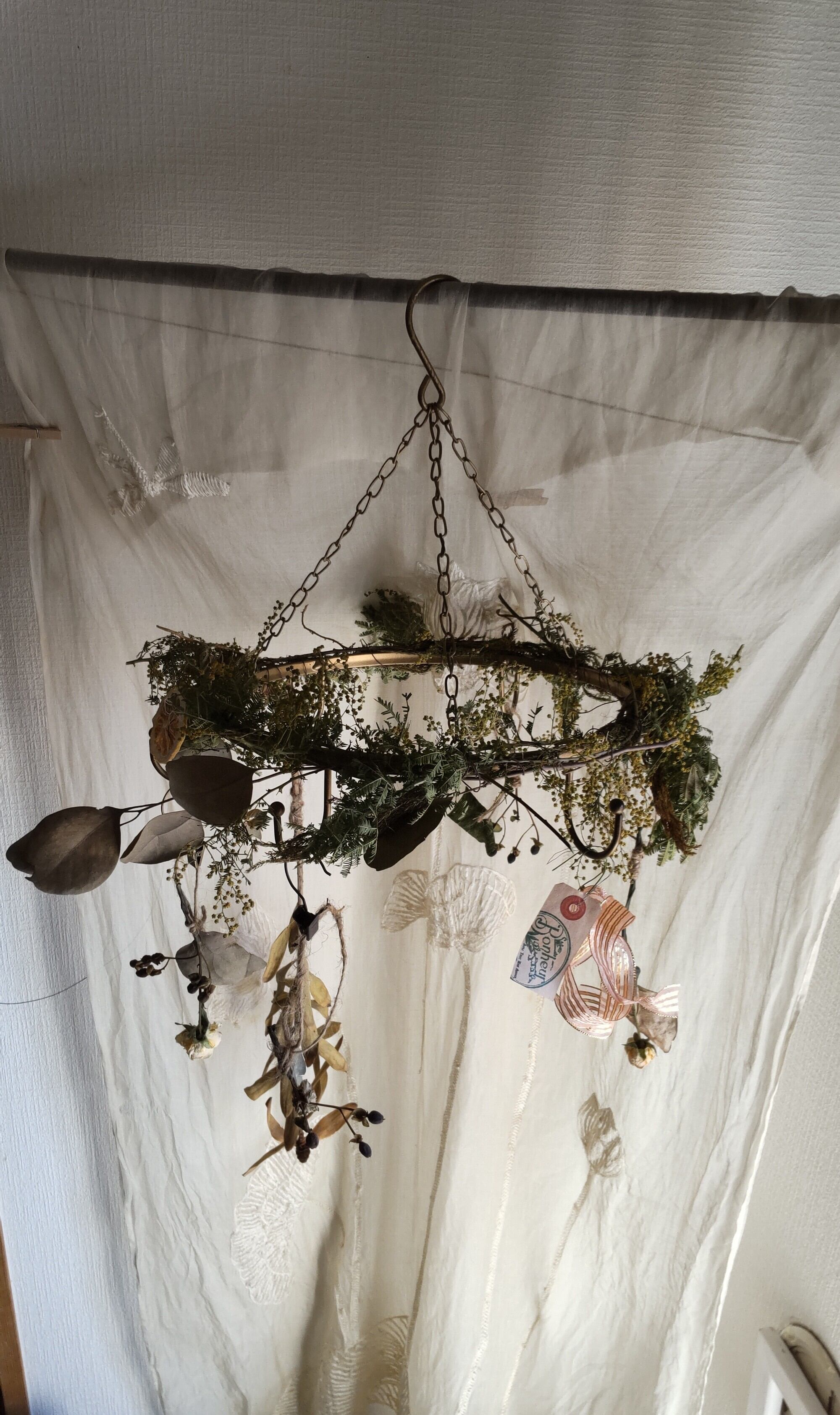 期間限定の特別なアイテム、「2025受注【242期間限定】瀬戸内地方ミモザとの大きなアイアンサークル フライングリース 無農薬レモングラス」が登場です!