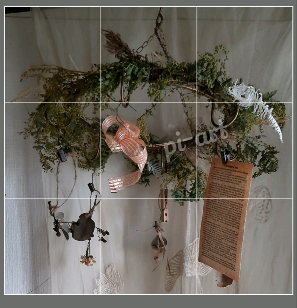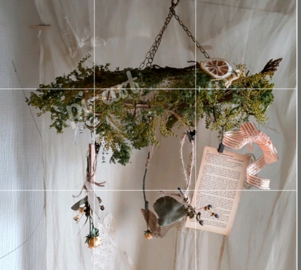 【243期間限定】ミモザとの大きなアイアンサークルフライングリース もみの木レモングラス葉ものヒメワラビ