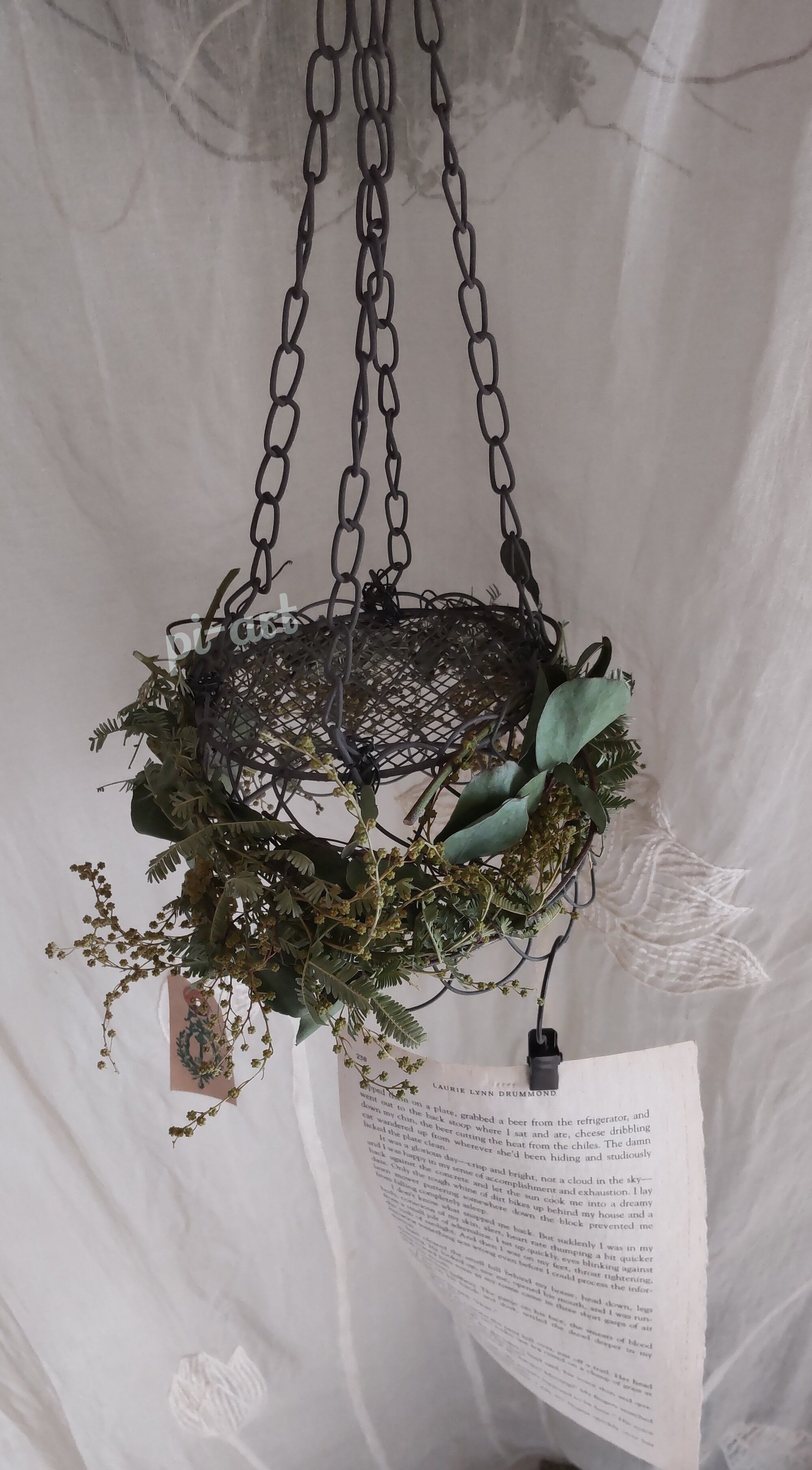ミモザとユーカリをミニアイアンに絡ませました