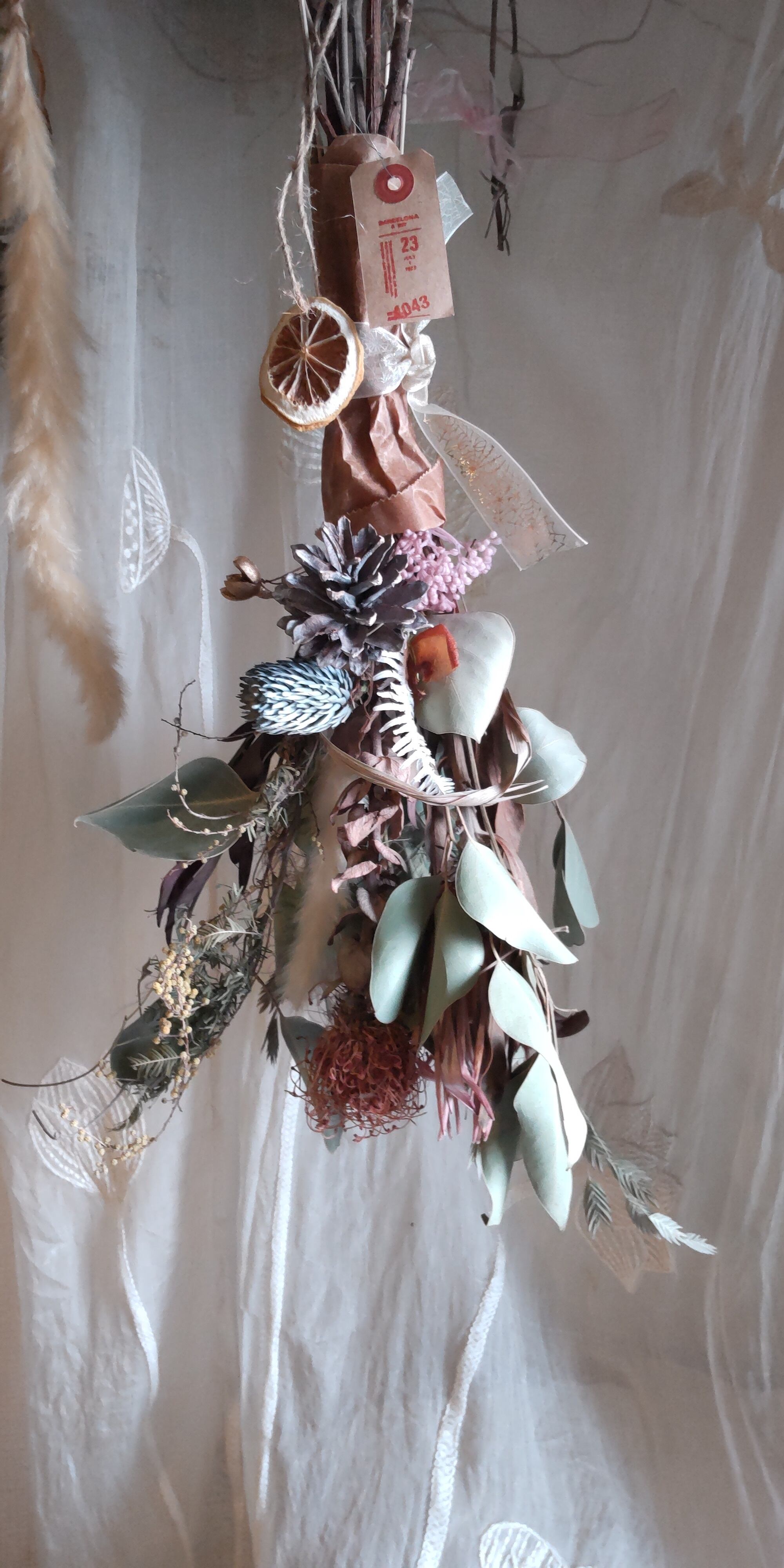 SALE【264】 ミモザいりナチュラルなプロテア ピンクッションスワッグ