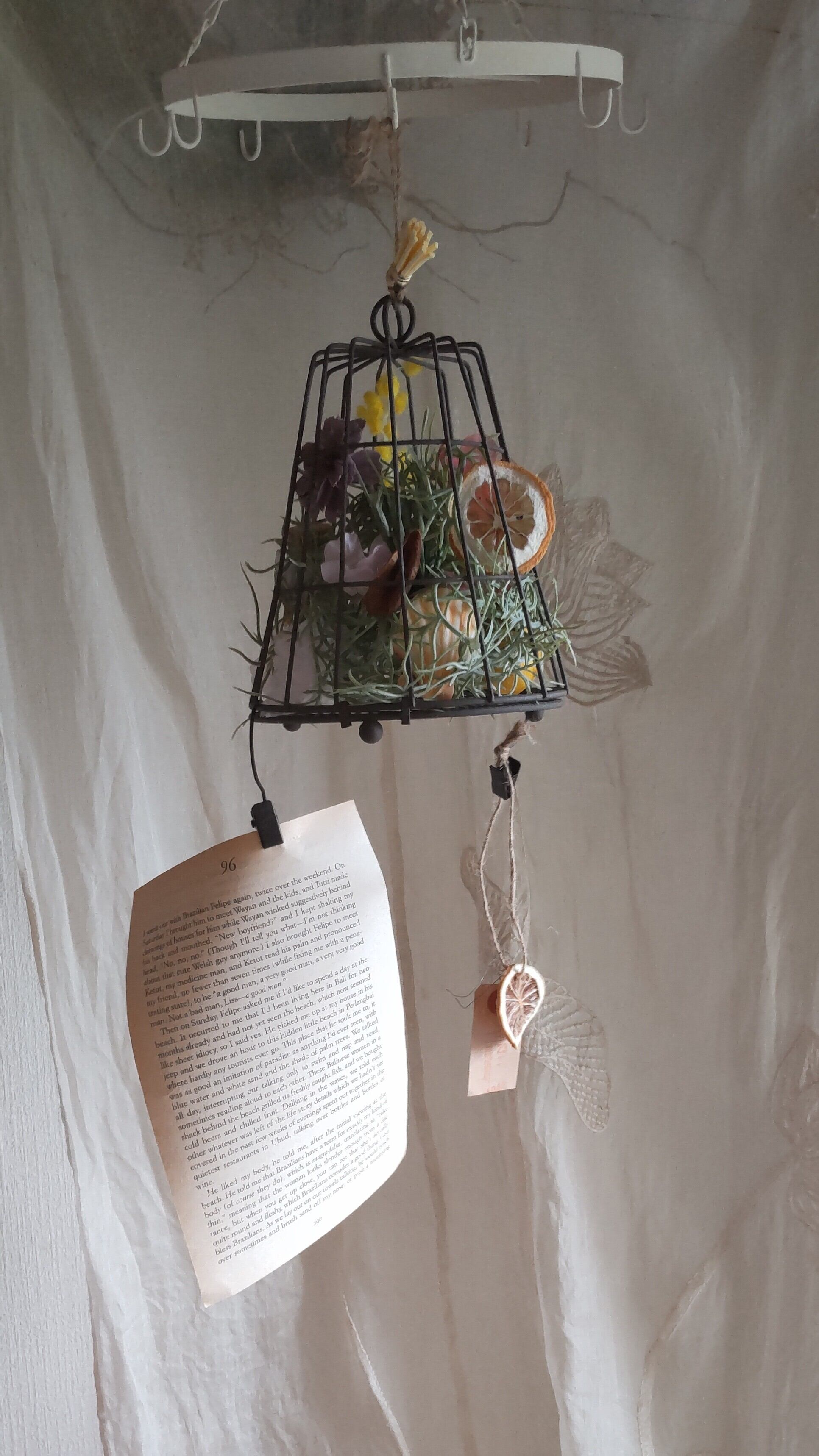 アイアンケースにアーティフィシャルフラワーと、ドライフルーツ、貝殻を詰めました