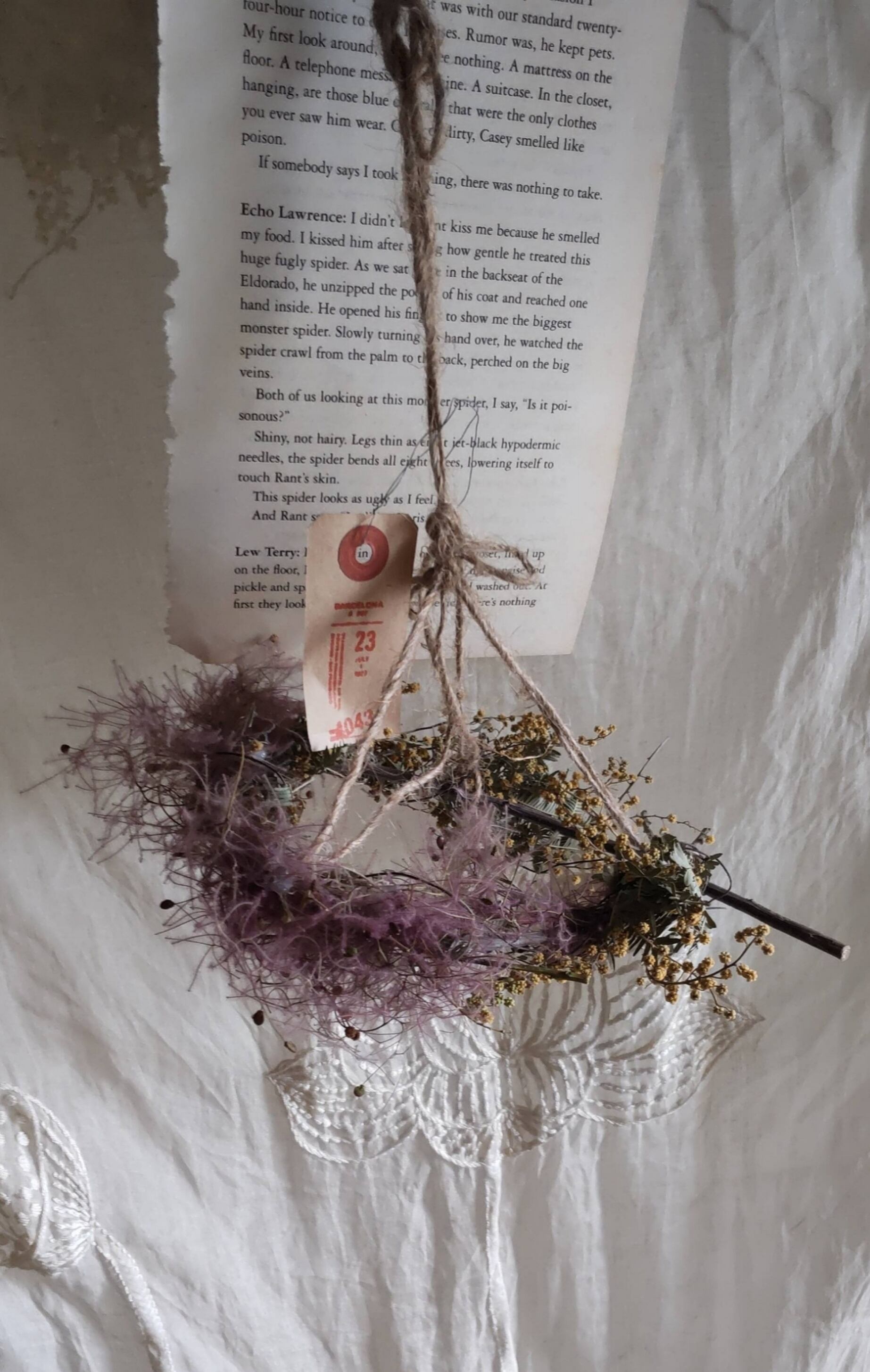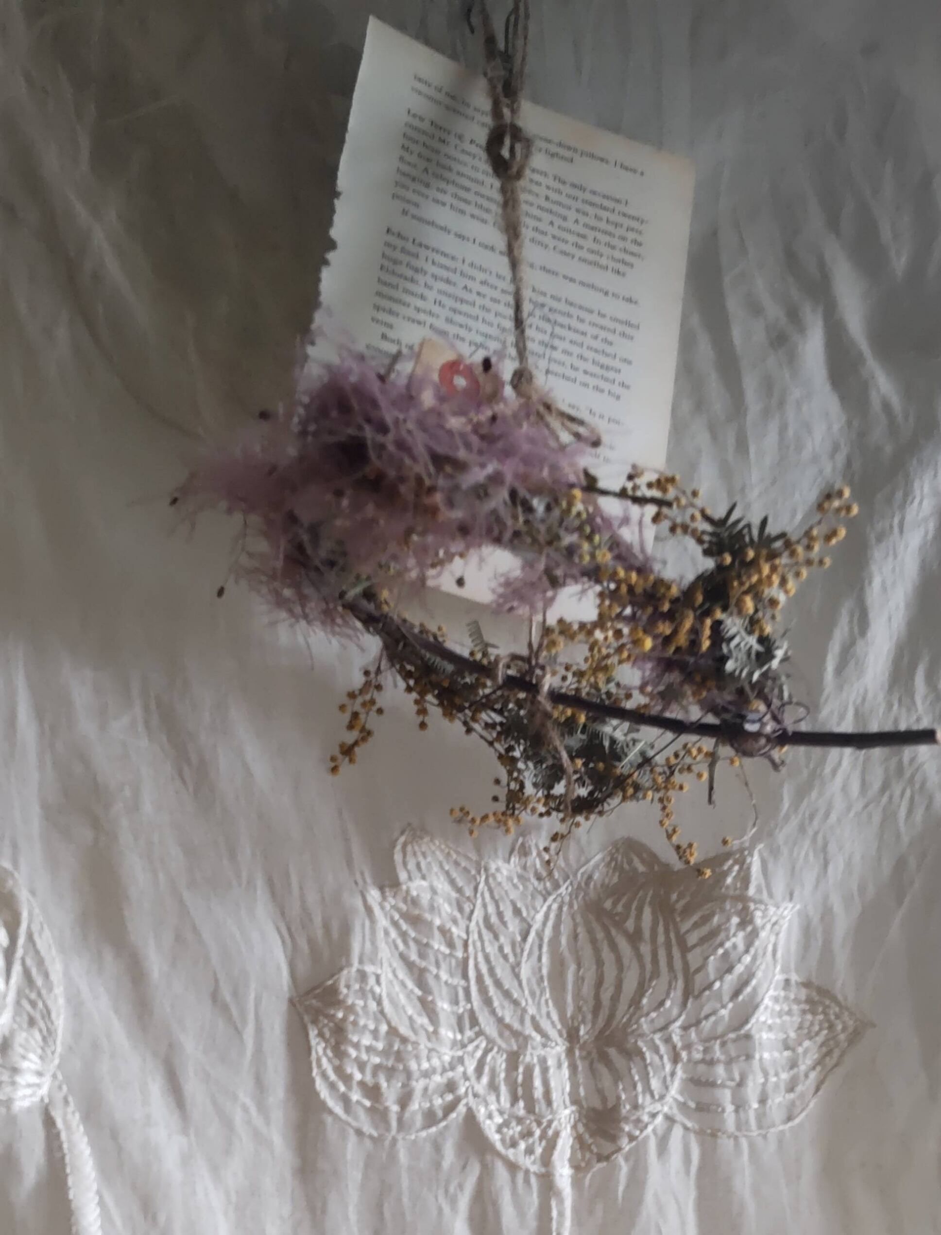 【737】ミモザの枝のスモークツリーとミモザのユラユラ鳥の巣フライングリース