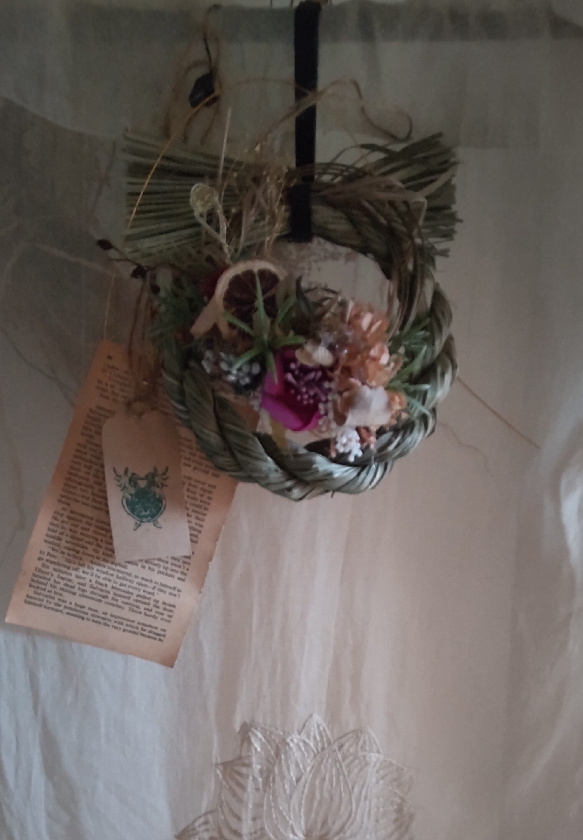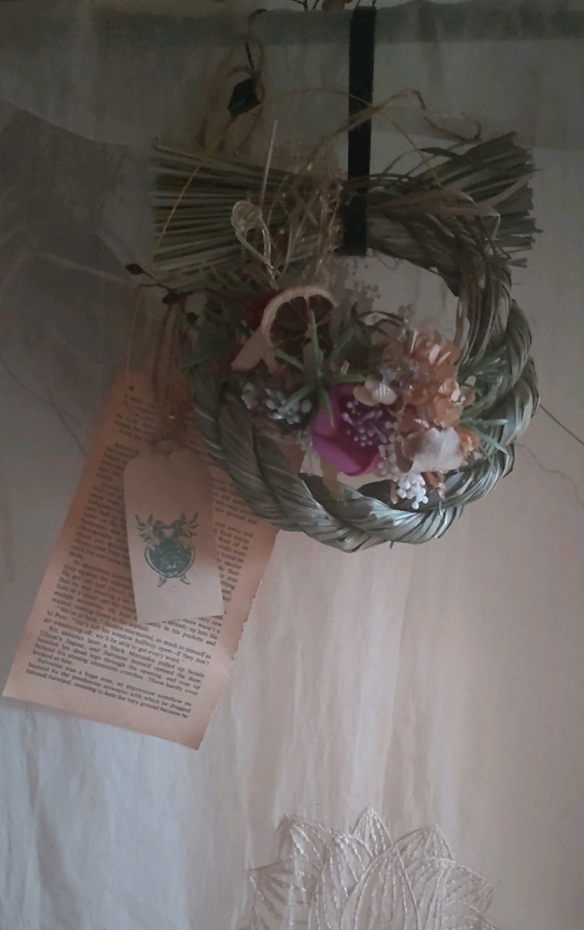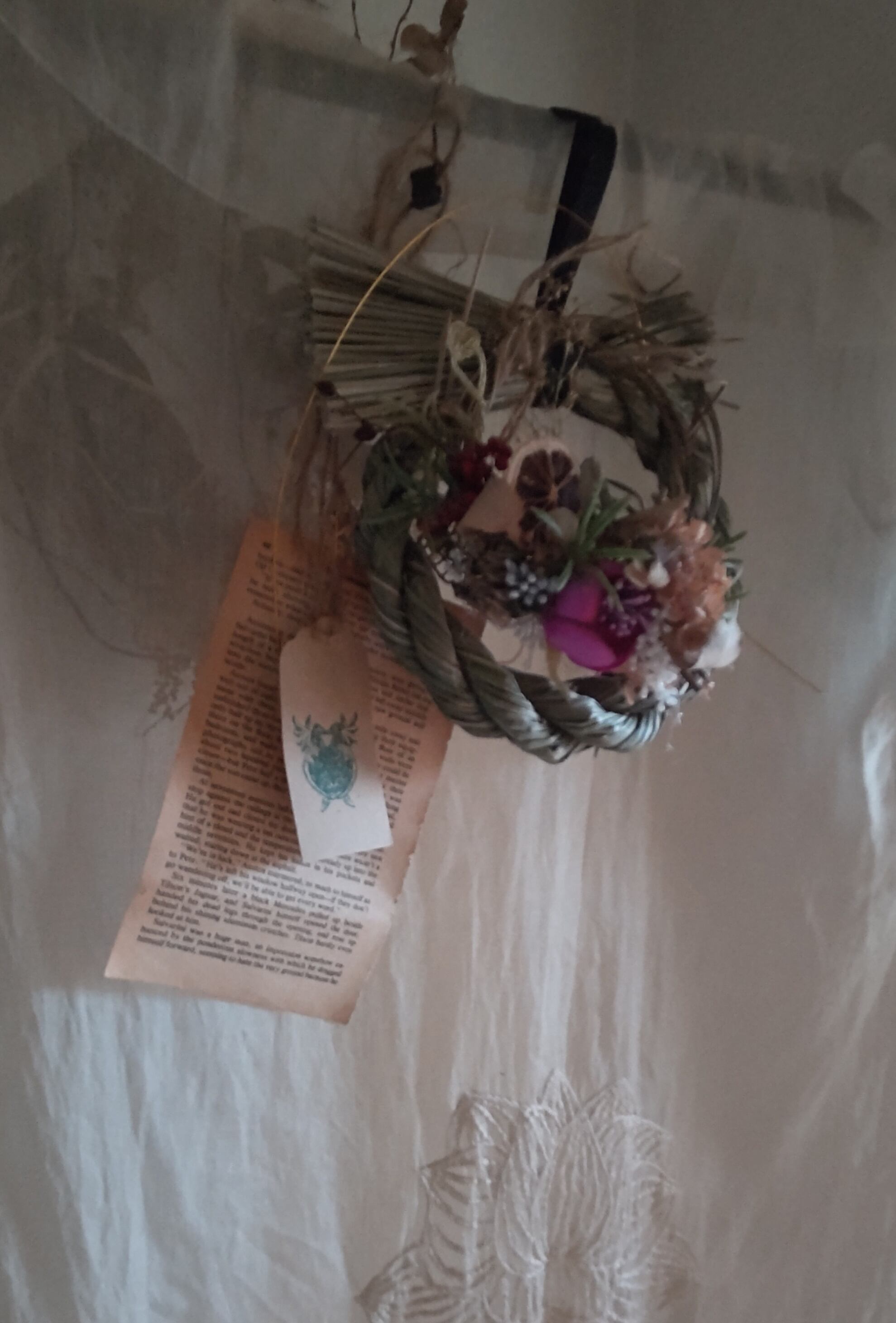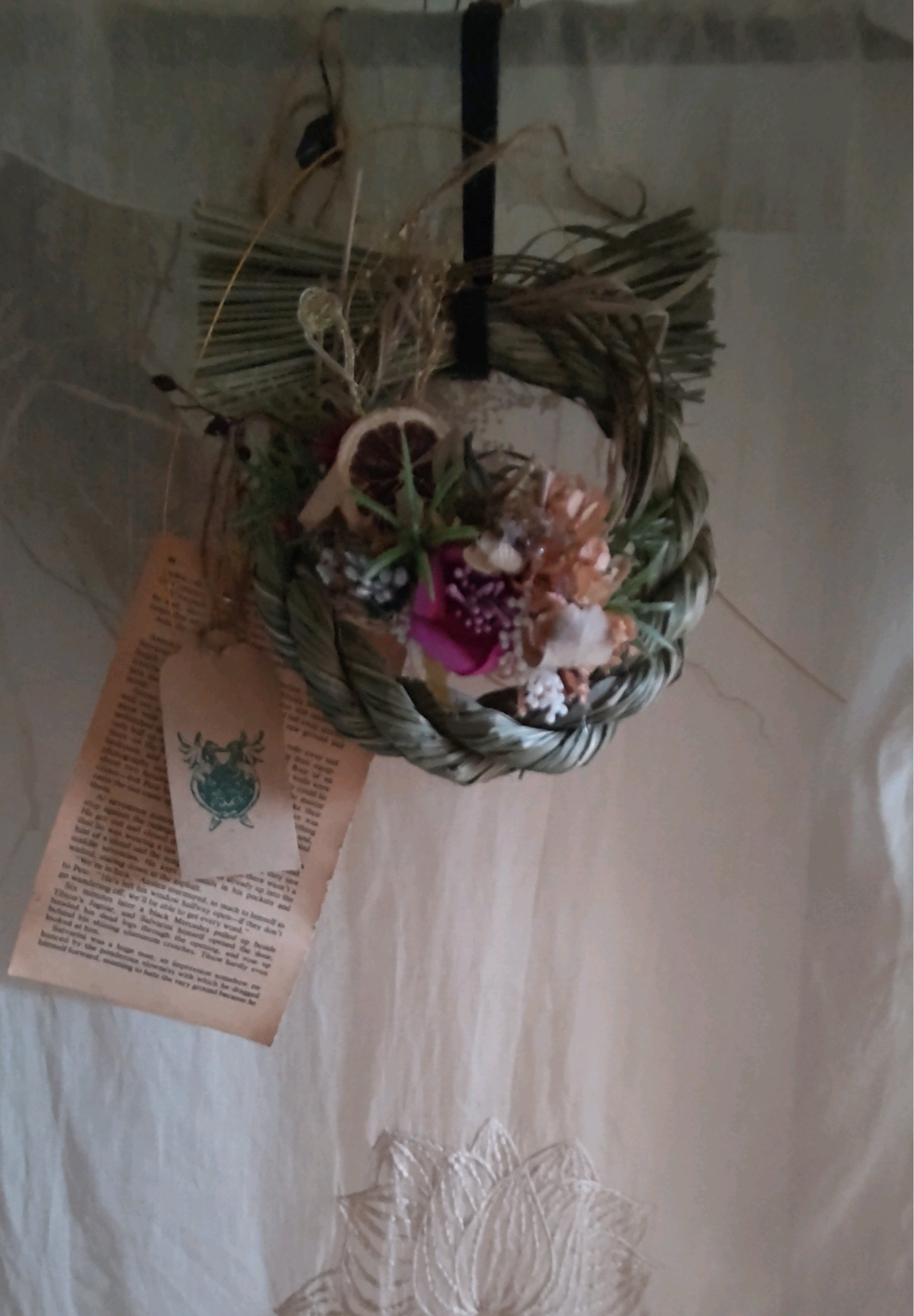 【779】お正月後は可憐なレモングラスとドライフルーツアイアンリングリース、シャビーしめ縄リース2023英字切り抜き付き