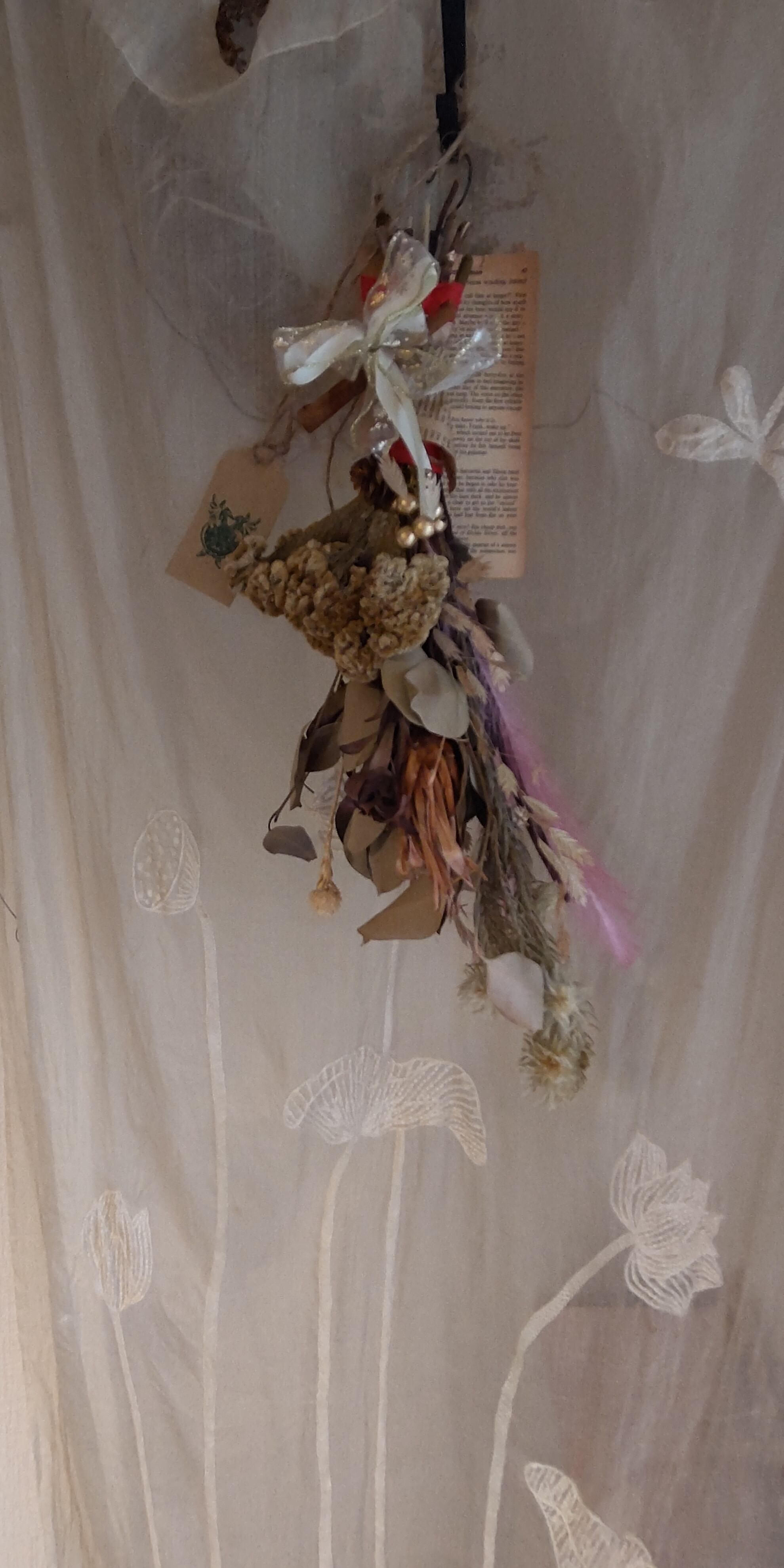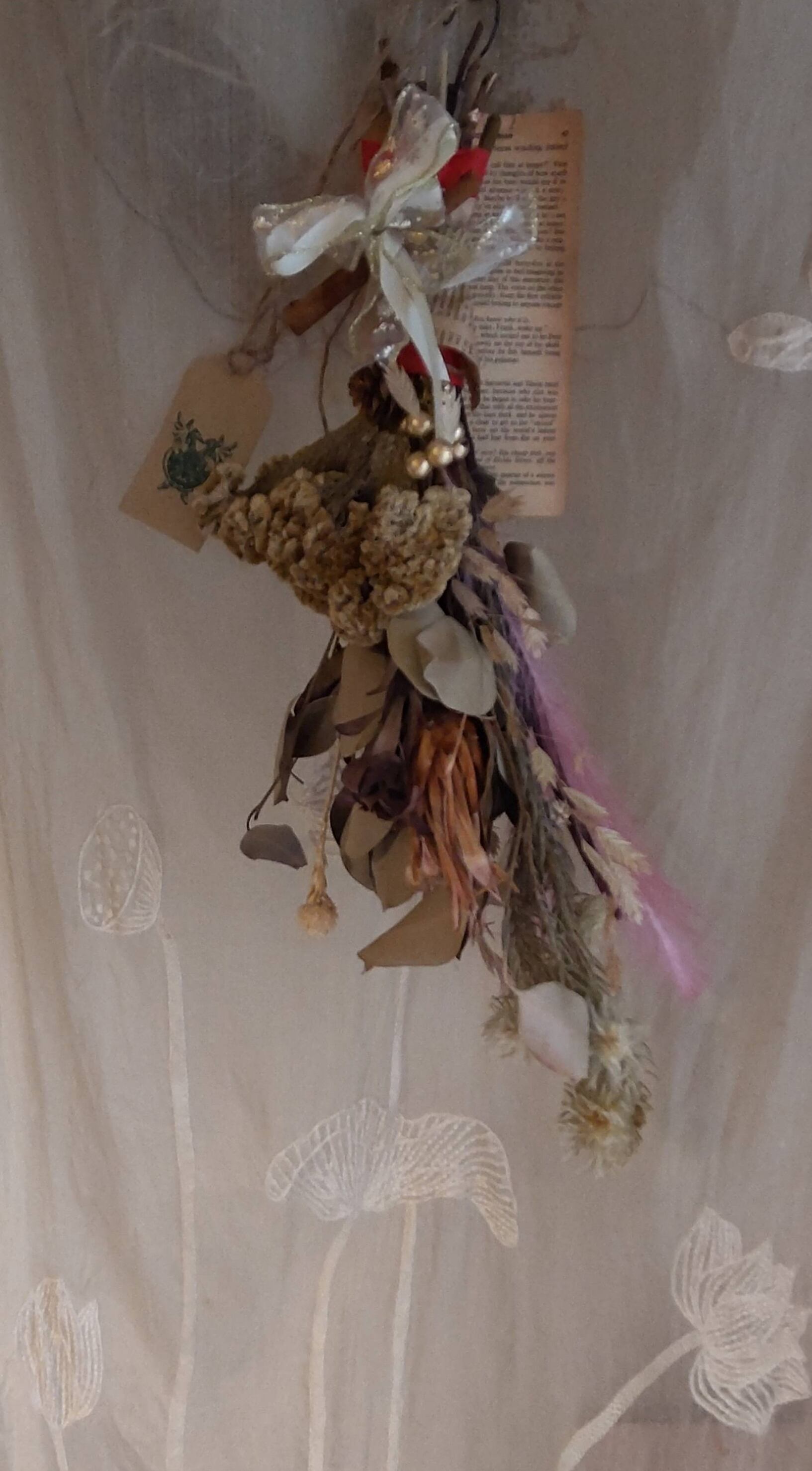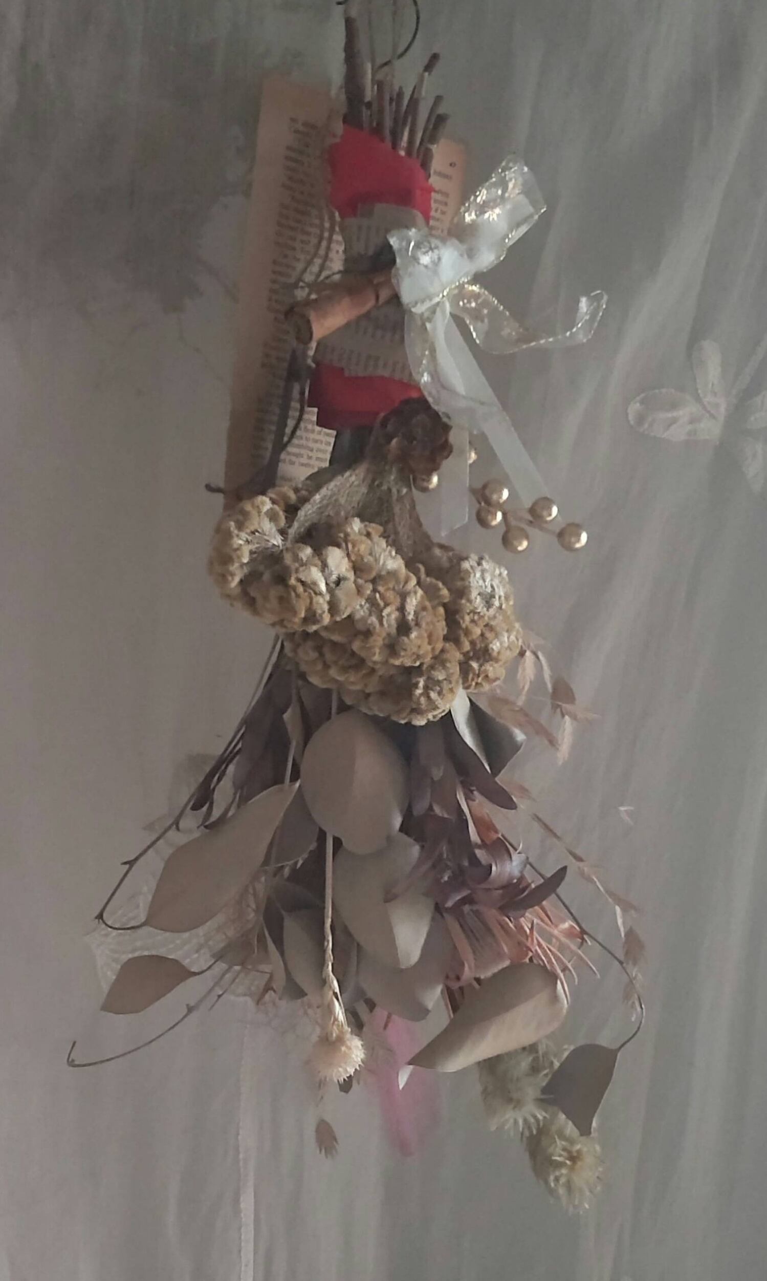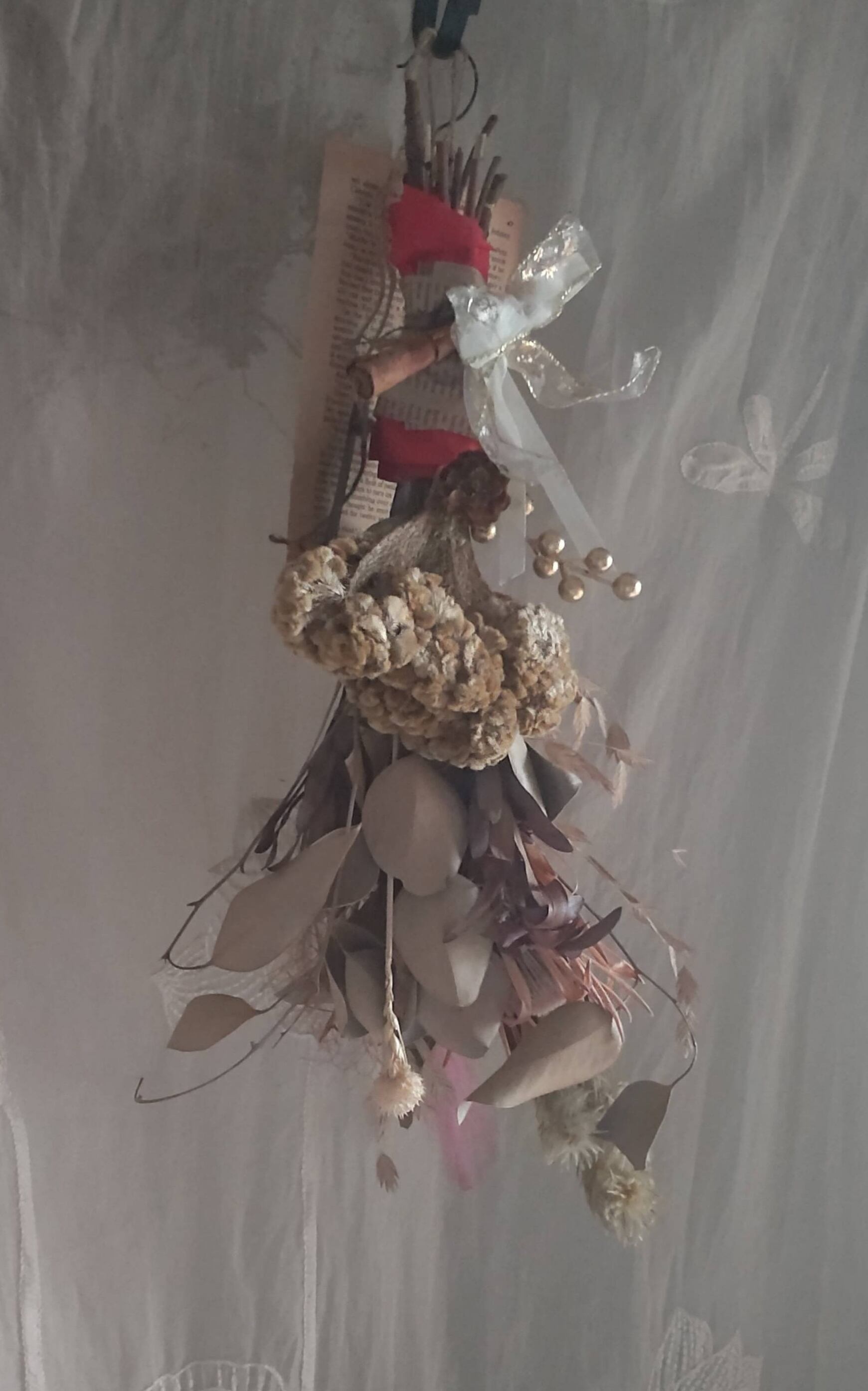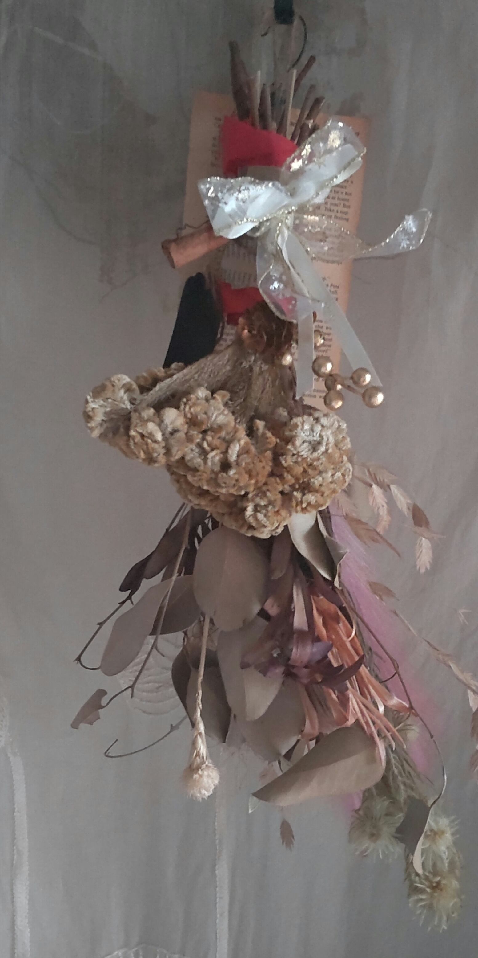 Sold out【776】シナモンとくすみカラーのケイト、ワイルドフラワーのスワッグ英字切り抜き付き